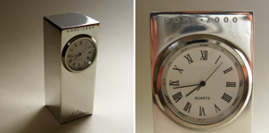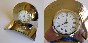 Size: Clock: 7cm diameter, Base: 8.7cm x 6cm x 1.8cm height
