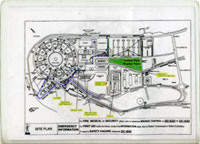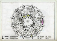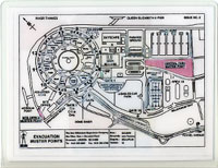 2-sided pocket map to Dome site. Features Emergency Information with Fire, Medical and Security locations, as well as Staff Restaurant, Staff Entrances and Muster Point.