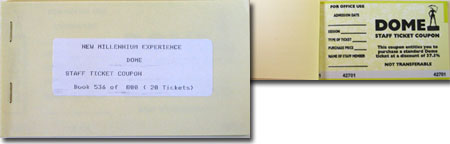 Book 536 of 800 (20 Tickets). Dome Staff Ticket Coupon - This coupon enitle you to purchase a standard Dome ticket at a discount of 37.5%. Not transferable. Contains tickets #42701 - 42720.